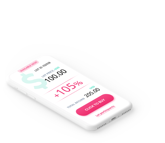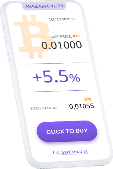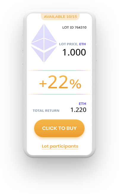 Get rewarded after buying the last lot from the series. The interest is accrued and the principal amount of the deposit is repaid automatically when all lots of the series are sold out, or 6 hours after the purchase